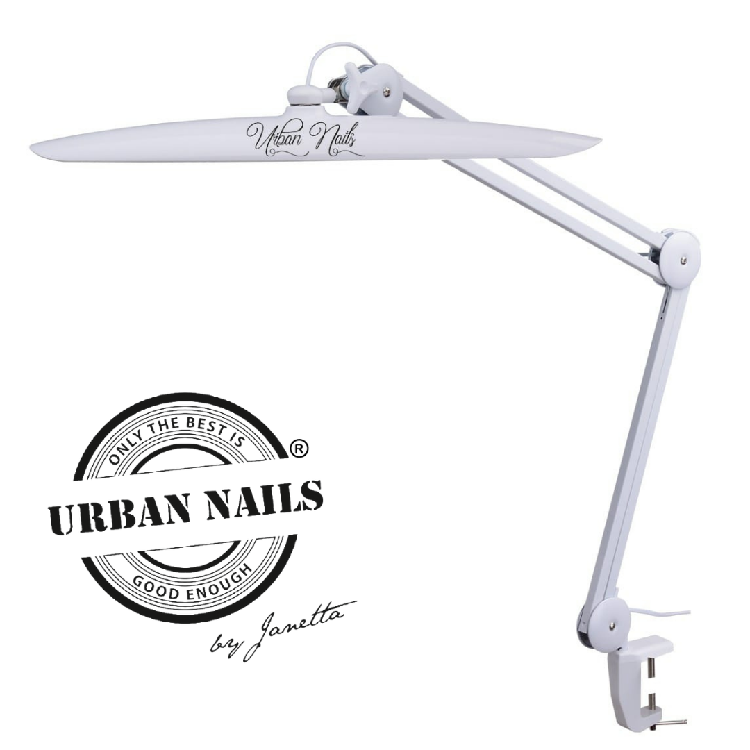 De Urban Nails Shine Bright Desk Lamp White biedt de ideale verlichting voor zowel professionele nagelstylisten als enthousiaste hobbyisten. Dankzij het heldere, gelijkmatige licht kun je elk detail van je nagelkunst nauwkeurig creëren. Het moderne, elegante design maakt deze lamp een stijlvolle toevoeging aan iedere salon of werkruimte.
