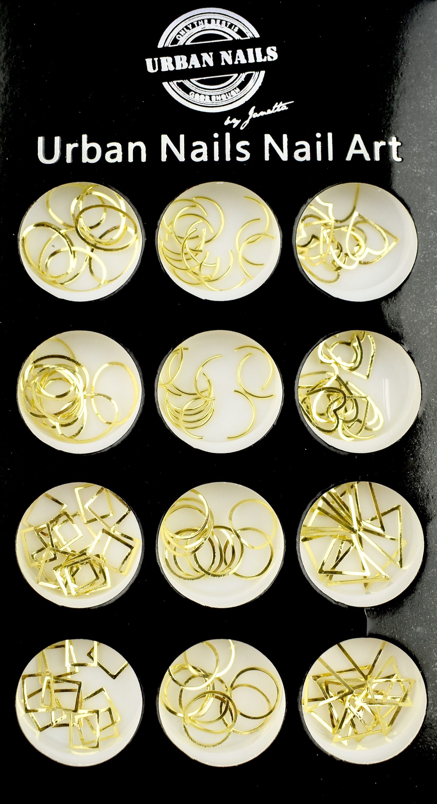 Deze luxe metalen ornamentjes in diverse vormen zijn perfect voor gebruik als inlay in acryl, bij de Reverse techniek met NeXt Gel, Jelly Gel, Fiber Gel of als afwerking in de tweede laag van Gel Polish. Ze zijn verkrijgbaar in drie stijlvolle kleuren: Silver, Gold en Rose.