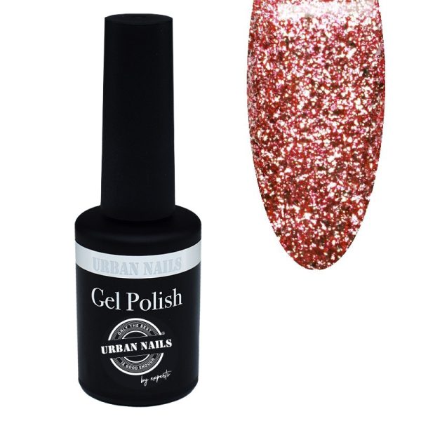 Deze hoogwaardige gelpolish van Urban Nails is geschikt voor zowel de natuurlijke nagel als kunstnagels. De lak hardt uit in 2 minuten onder een UV-lamp of in slechts 60 seconden onder een LED-lamp. Dankzij het fijne kwastje breng je de kleur strak en gelijkmatig aan. Voeg een vleugje glamour toe aan je nagels met deze luxe gelpolish